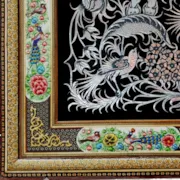 تابلو قلم زنی طرح گل و مرغ با قاب خاتم نقاشی سایز 81*51