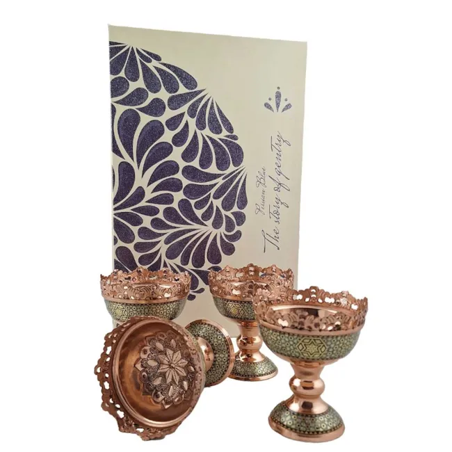 پک هدیه چهار تایی آجیل خوری 11 خاتم کاری با جعبه درب لپ تاپی مناسب هدایای سازمانی، تبلیغاتی و شخصی خاص تولید شده در صنایع دستی زاوش