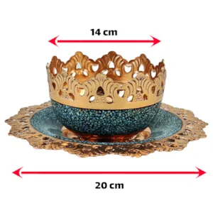 کاسه بشقاب شبکه بری فیروزه کوبی محصولی زیبا و چشم نواز تولید شده در صنایع دستی زاوش