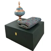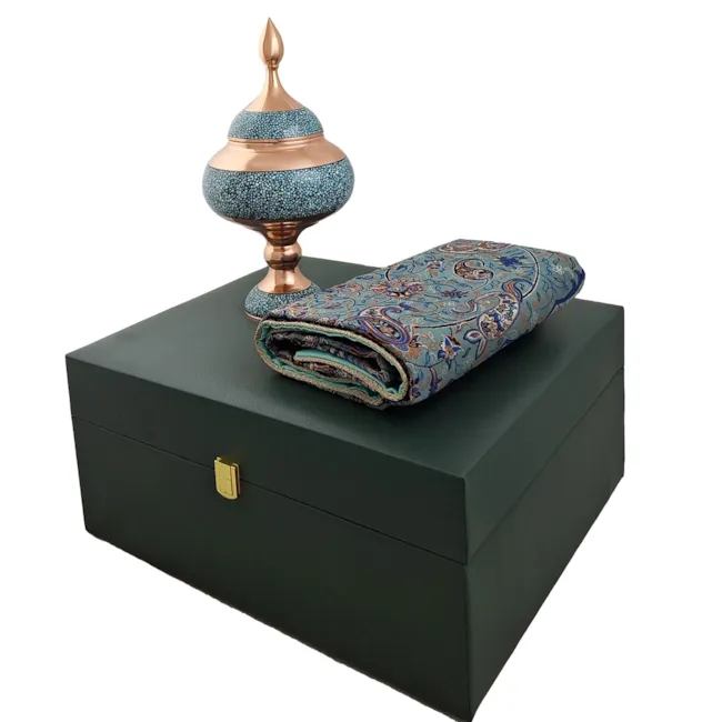 پک هدیه شکلات خوری بیشین فیروزه و سفره ترمه با جعبه چرم